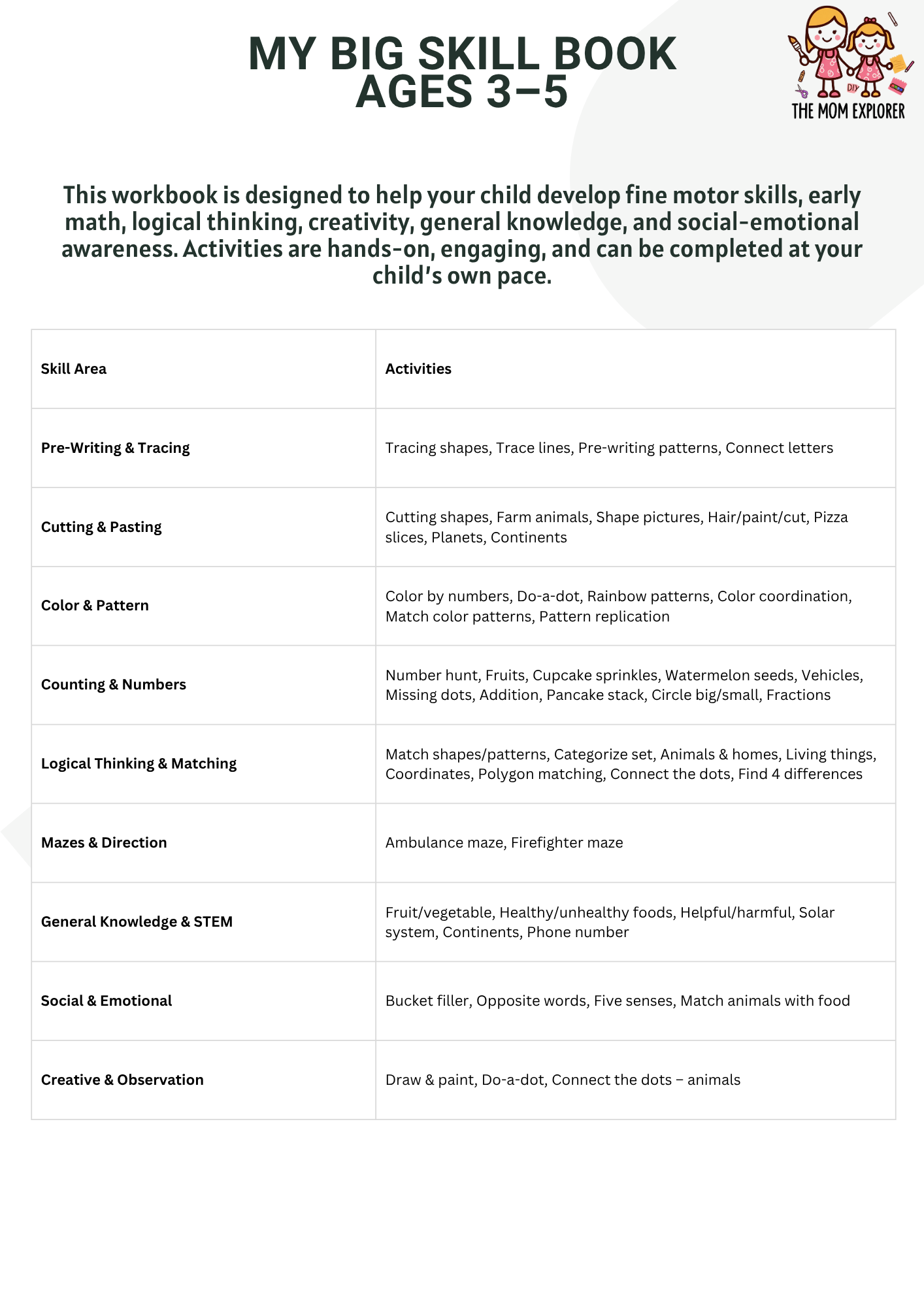 Parent-Friendly: Easy-to-follow activities that can be done at home with minimal guidance.