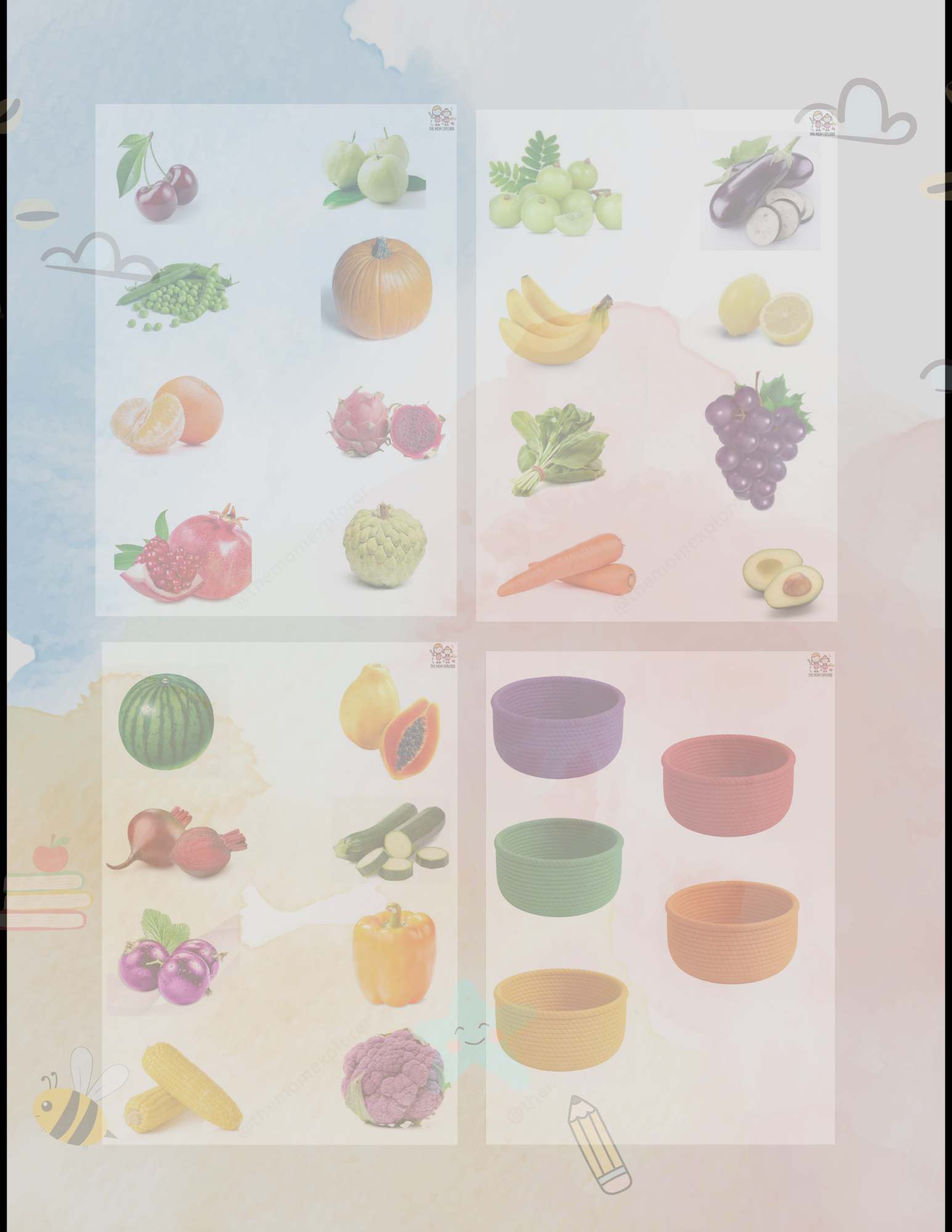 How to Use: Print, cut, and let your child match each item to the basket of the same color—laminate for long-term fun!