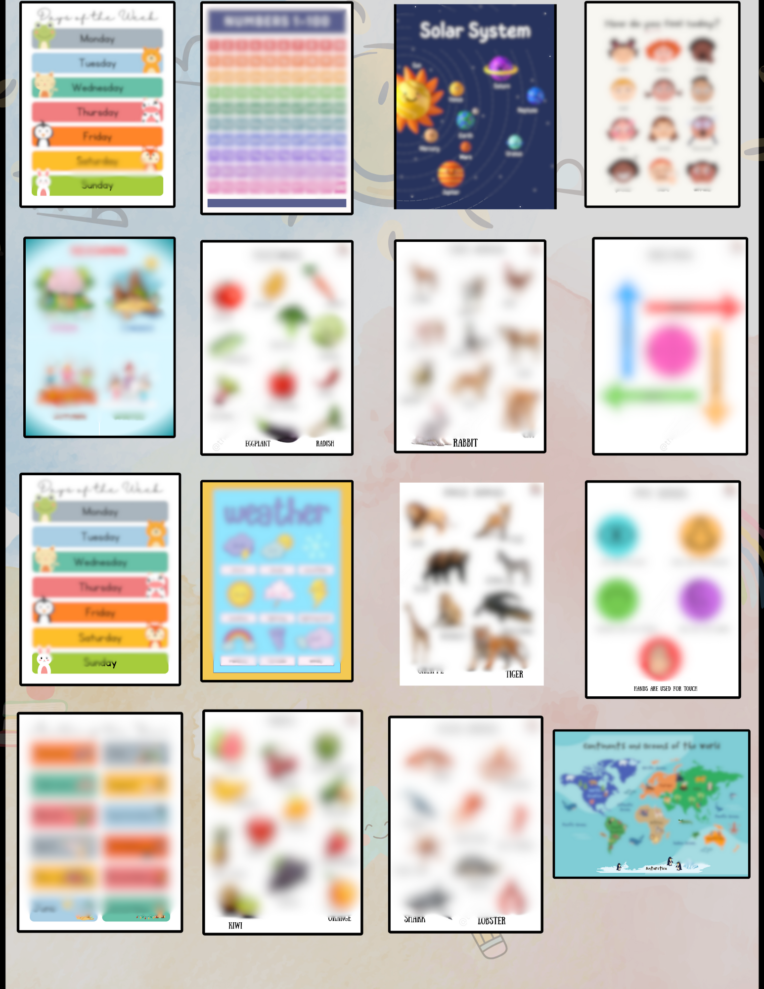 This 16-sheet printable bundle is packed with exciting topics like the Solar System, Fruits & Vegetables, Continents, and so much more!