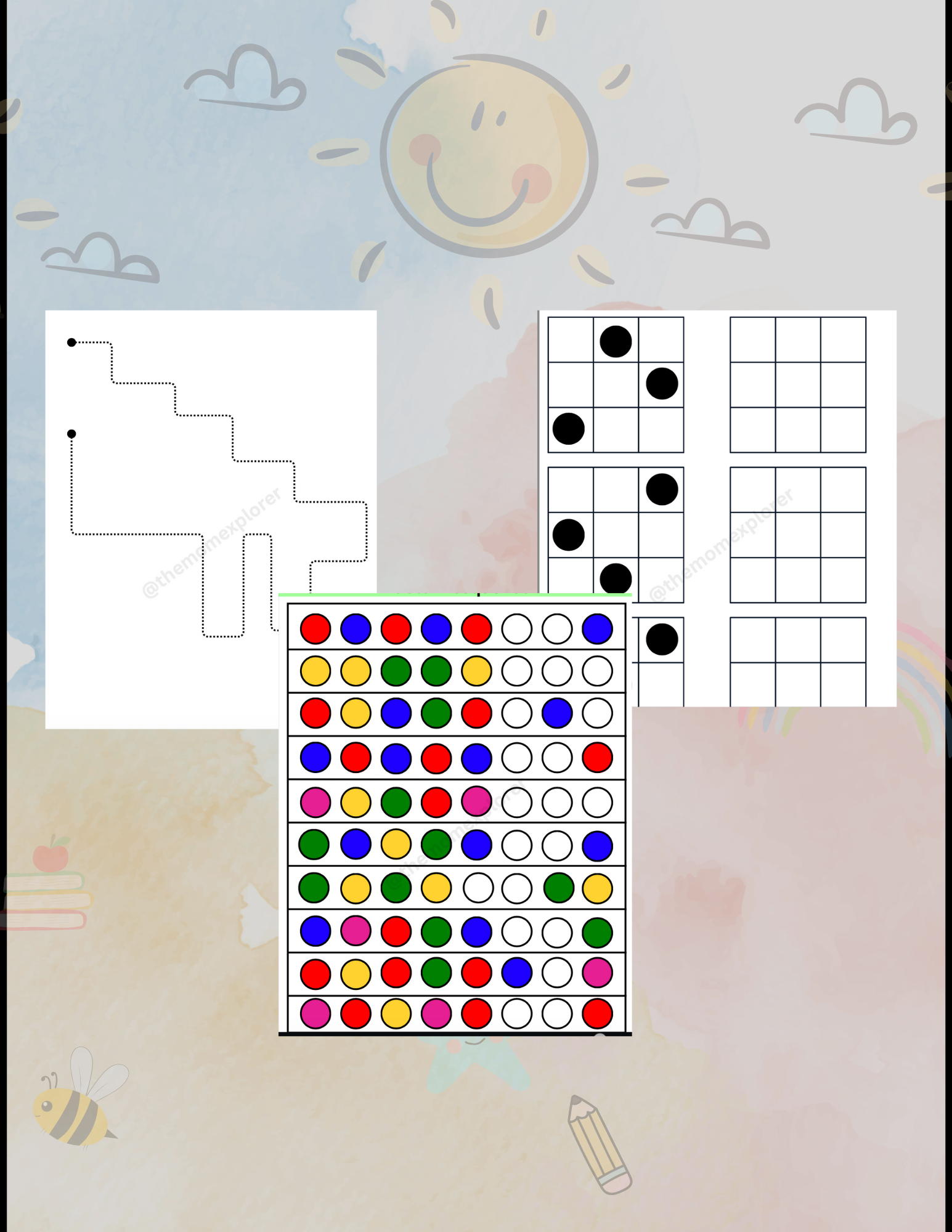 This Pattern Fun Pack of 10 sheets is designed specially for ages 3+ to help little learners recognize, complete, and create patterns with shapes, colors, and pictures.